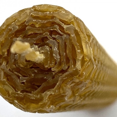 Натуральная вощина изготавливается из ароматнейшего натурального воска, имеет ярко желтый, почти оранжевый цвет. Целебные свойства воска известны с давних времен и применялись в восковых свечах. При сгорании воск выделяет полезные для здоровья фитонциды, которые являются не только антисептическими, но и иммунно-стимулирующими веществами.